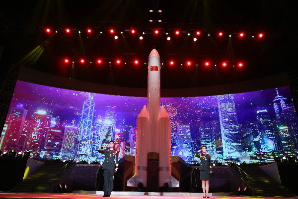 「國慶文藝晚會」在籌委會秘書長蔡冠深宣布下正式開始,並由中國人民解放軍駐香港部隊儀仗隊及軍樂團帶領高奏國歌,蔡冠深博士及行政區署理行政長官張建宗分別致辭。