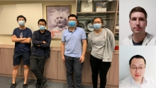 圖為研發「萬能墨水」的研究團隊成員:楊森教授、研究生洪兆輝、陳一帆、本科生盧穎琪、訪問學者Kim Kafenda、前中大研究助理教授夏慷蔚。