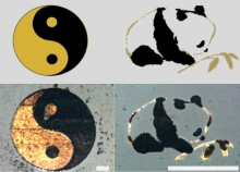 圖片展示運用不同金屬(鉑金和黃金)所打印的圖案。