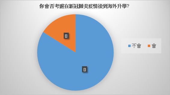 嶺南大學研究生院稱,今年4月下旬至5月上旬以網上問卷訪問2,739名來自香港及內地的大學生,讓他們分享在新冠肺炎疫情後到海外升學的計劃和其首選的升學目的地。結果顯示,只有16%受訪者有意出國留學,當中美國是最受歡迎的升學目的地,有17%受訪者選擇、香港排名第2,有13%受訪者選擇、英國位列第3,有12%受訪者選擇、而日本和台灣同時有10.8%受訪者選擇。