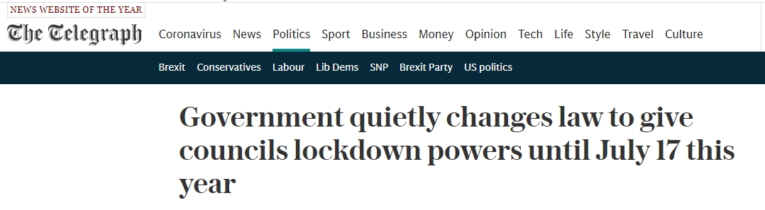 英國《每日電訊報》周六報道,英國政府已悄悄擴大了針對新冠病毒的封鎖法律,以賦予英格蘭地方議會關閉酒館、飯店、商店和公共場所的權力,直到今年7月17日。
