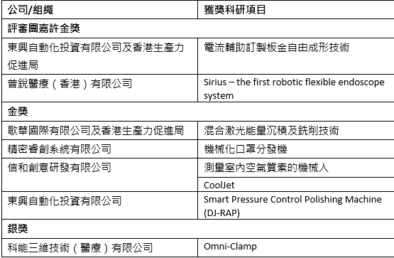 香港工業總會會員企業在「2021年日內瓦國際發明展」得獎名單。