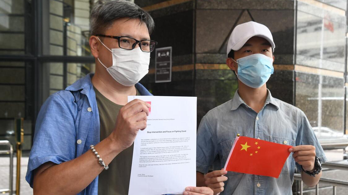 香港特區政府因應新冠疫情嚴峻押後立法會選舉,早前曾遭新西蘭政府批評。不過,新西蘭政府日前因應當地新冠肺炎疫情稍為趨升,隨即宣布延後大選,「香港政研會」、「DQ行動組」、「愛國護港101」3個香港民間團體昨日前往灣仔新西蘭駐港總領事館抗議,批評新西蘭持雙重標準,干預香港事務。新西蘭駐港總領事館派代表接收團體抗議信。