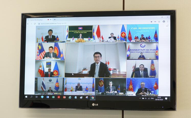 商務及經濟發展局局長邱騰華28日在第四屆中國香港-東南亞國家聯盟經貿部長視像會議上發言時指出,疫情帶來前所未有的挑戰,環球和區域經濟環境瞬息萬變也構成不明朗因素。他呼籲加強區域合作,以緩減新冠肺炎疫情帶來的衝擊及支持疫後經濟復蘇,並強調保持邊界開放和避免不公平貿易壁壘或不理性貿易政策至為重要。