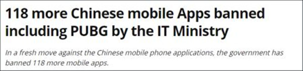 印度信息與科技部(MEIT)宣稱,“這118個軟件不利於印度主權與完整、印度國防、國家安全與公共秩序。”