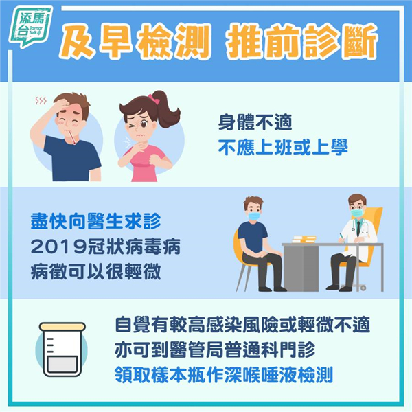 政府下午在社交網站facebook專頁「添馬台」發文,指新冠肺炎毒病的病徵可以很輕微,市民應抱着及早檢測,推前診斷的態度,盡快求診。