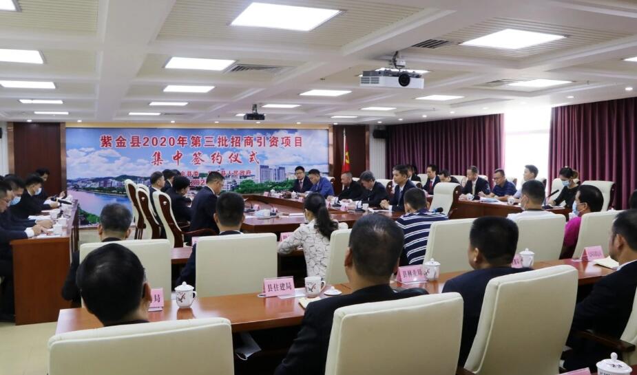10月12日,河源市紫金縣舉辦2020年十月招商引資項目集中簽約活動,廣東中紫康養、廣州成億電器、惠州華迪實業、凱沃斯、深圳市艾美龍科技、深圳市泰興德科技、深圳市百事精密模具、惠州市汪茂模具塑膠等8家企業成功簽約落戶紫金,8個項目總投資32億元,項目全部建成投產後年上繳稅收5500萬元。縣領導廖繼聰、鄧紅衛、葉競祥、劉向紅、鍾建政、黃偉明、張志勇、謝秉波、鍾偉權等參加集中簽約活動。