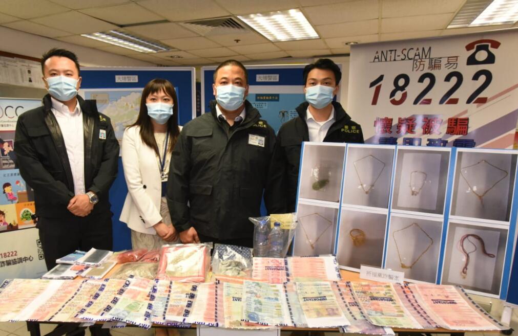商業罪案調查科人員根據情報分析,25日聯同大埔警區刑事部突擊搜查兩個分別位於旺角及黃大仙的目標單位,在旺角的單位內成功拘捕2男2女,年齡介乎至36至64歲,4人均為非法入境者,相信他們已在本港逗留6個月。警方亦在黃大仙的單位內,拘捕一名1男3女,年齡介乎21至48歲,當中的48歲女子亦為非法入境者。警方亦在場檢獲現金、金器,相信團夥涉及港九新界的多宗騙案。其中一宗案件發生在今年7月在粉嶺區,一名71歲女子被團夥騙去20多萬現金。另一宗案件發生在今年6月在沙田區,一名47歲女子被團夥騙去5萬多現金。