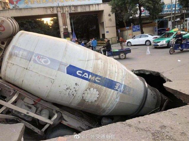 今日(4日)7時左右,廣州市天河區棠德西路突發地陷,一輛泥頭車陷在坑裏,周圍交通受阻。目前,該車司機已脫困,警方已在事發現場周圍設置警戒線處置。