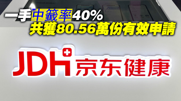 京東健康(6618)公布招股結果,一手50股中籤率40%,以35.3萬份申請認購一手計,僅約14.15萬份獲分貨。抽200手方穩獲一手。該股明天﹙8日﹚掛牌。