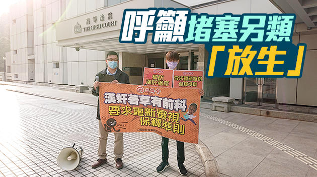 另外,工聯會社會事務委員會兩位成員到高等法院外請願。委員會發言人張先生表示,近日有多名被告人獲法院批准保釋後潛逃;至前日(23日)黎智英涉勾結外國勢力危害國家安全仍准保釋。工聯會認為此舉罔顧有關人士的潛逃風險,有另類「放生」可能;認為保釋條件過於寬容,應重新審視保釋條件準則。