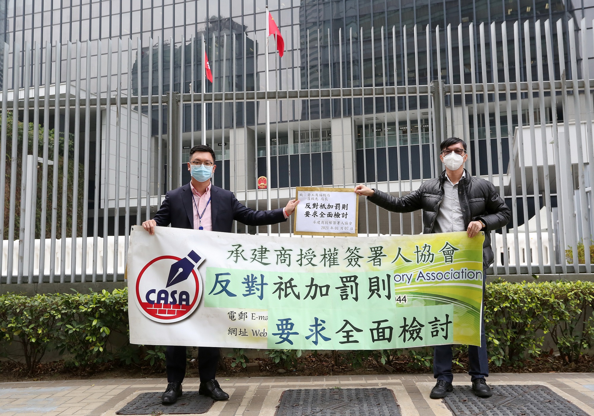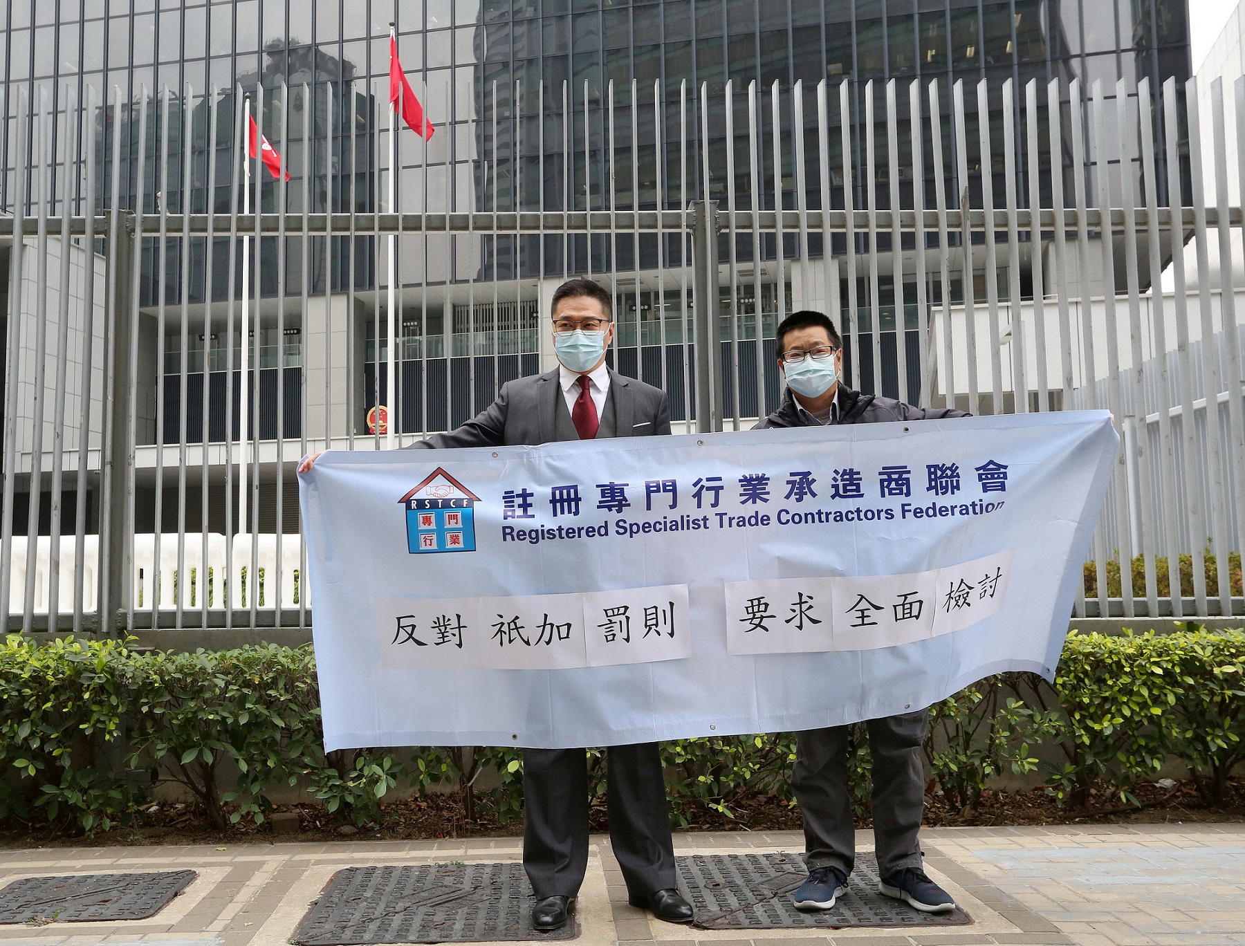 香港建造商會、承建商授權簽署人協會、香港建築業承建商聯會及註冊小型工程承建商簽署人協會指,它們今日(7日)到政府總部門外,向勞福局副局長何啟明及自由黨立法會議員邵家輝遞交請願信。
