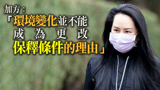 法官做出裁決時指出,目前的保釋條件是確保孟晚舟無法逃離加拿大的最低限制,環境變化並不能成為更改保釋條件的理由,因此駁回孟晚舟放寬保釋條件的申請。法官認為盡管孟晚舟一直遵守保釋條件,但她仍然面臨安全隱患和離境的可能性。