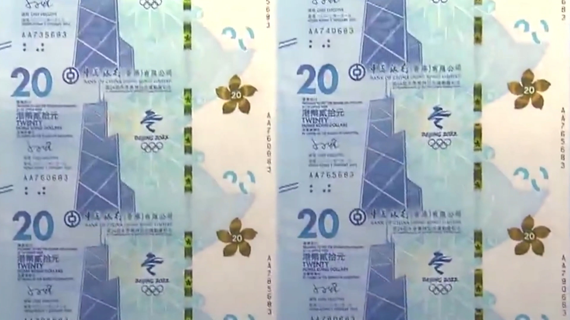 為慶祝北京主辦2022年冬奧會,中銀香港發行200萬張紀念鈔。紀念鈔面值港幣20元,主色為藍色,以唐詩《天涯共此時》為設計理念。鈔票正面以北京2022年冬奧會會徽及香港中銀大廈為主景,鈔票背面則以萬里長城為主景,配以在明月下維多利亞港剪影作背景。紀念鈔票分為單鈔、四連張及35連張,每套由138元至1388元。年滿18周歲的香港市民可在12月1日至10日通過網上或分行申請認購。配售結果將於12月21日公布。中銀香港表示,發行紀念鈔的收益,將全部捐贈用作香港特區公益慈善用途
