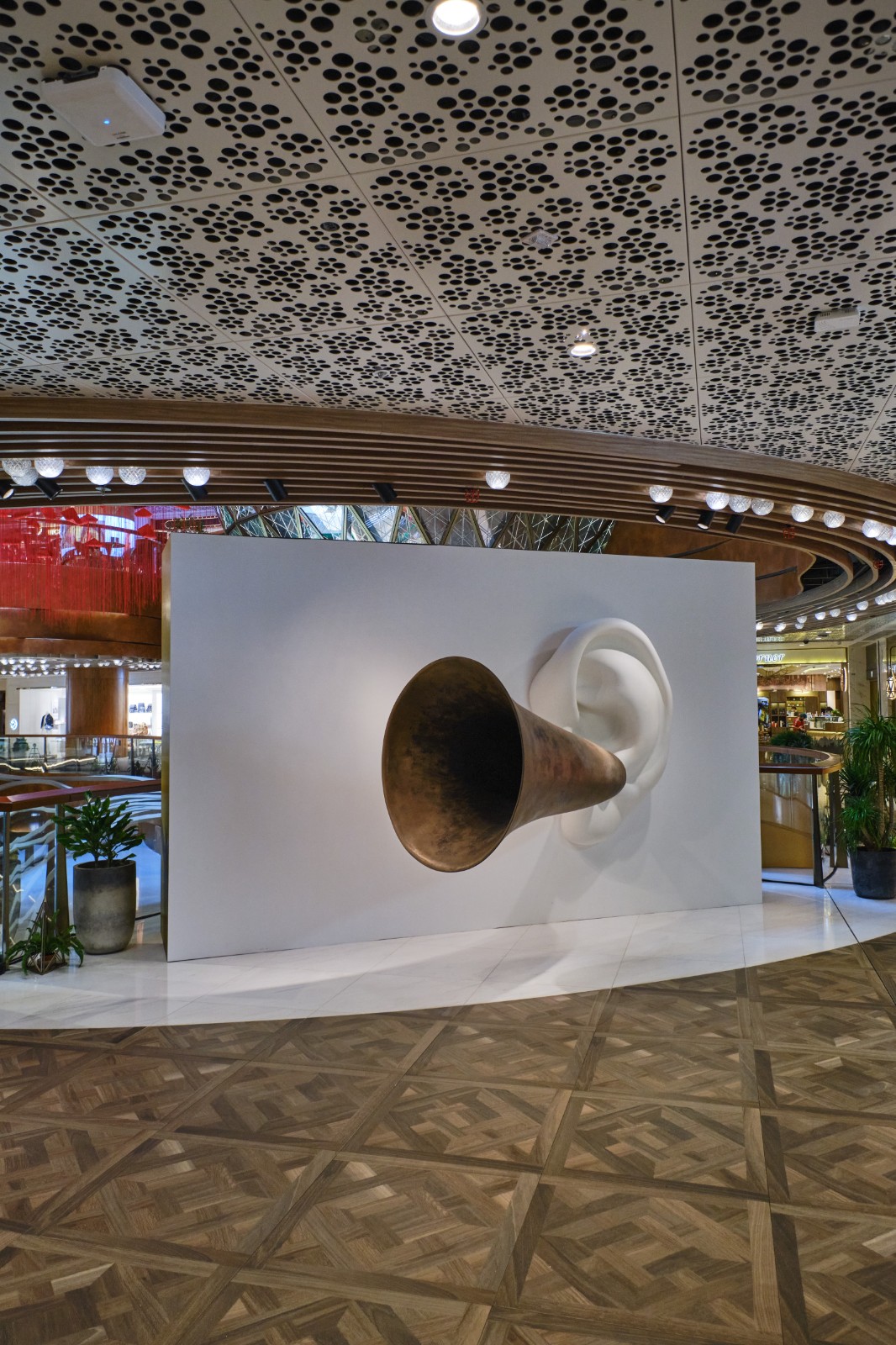 場內各樓層並會展示逾20件世界級藝術品,包括美國概念藝術大師John Baldessari 於2007年打造的《貝多芬的喇叭(與耳朵)第127號》、加拿大雕塑家David Altmejd 的作品《前夕》等,其中日本大阪藝術家塩田千春創作長達12米的大型藝術裝置《I hope…》,以離地10米的高度,懸浮於半空。作品於疫情期間創作,由鋼船裝置、大量紅繩與5000封由全球各地的人手寫的願望信組成,藝術家希望透過作品提醒觀者在面對不確定狀況時依然要懷抱希望。為配合展覽,Artisan Lounge推出主題下午茶,讓參觀者以全新視角邊嘗美點邊賞藝術。參觀者可報名參加免費藝術導賞團(預約連結:https://bit.ly/3Q9ESoH ) ,了解每件焦點作品的創作意念,探索藝術的趣味。 (記者:Janice)