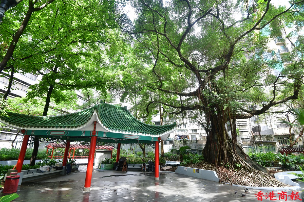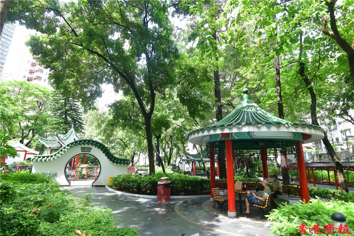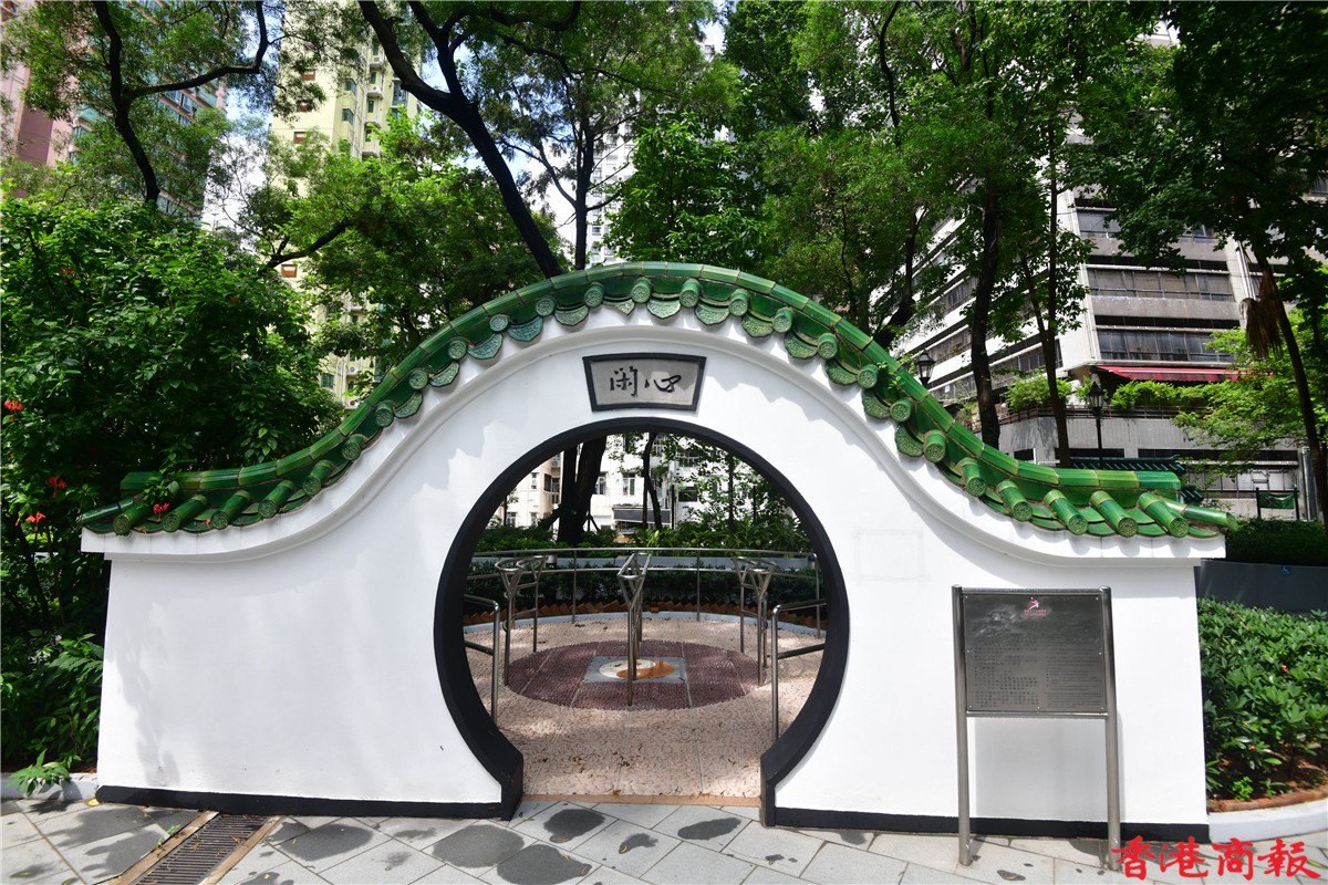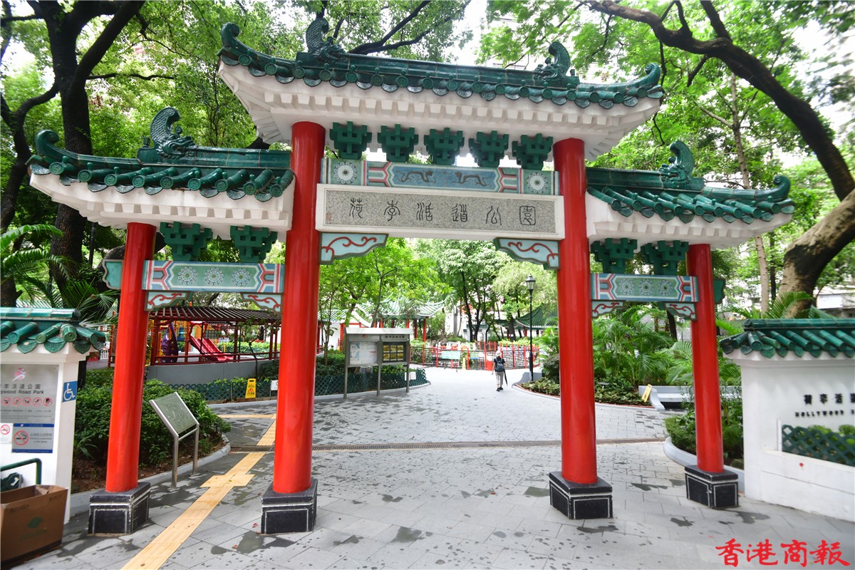 上環荷里活道公園四周都被商業大廈圍繞,在商業味濃的地區中,這個充滿中國特色設計的公園,的確令人眼前一亮。