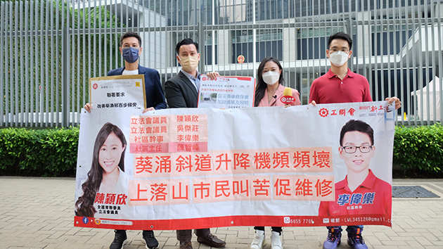 陳穎欣與吳傑莊今日(20日)聯同社區幹事李偉樂和社區主任陳智峰到政府總部請願,向運輸及物流局遞交超過2000多名葵涌邨居民的聯署,促請當局監督路政署與承辦商作改善跟進。