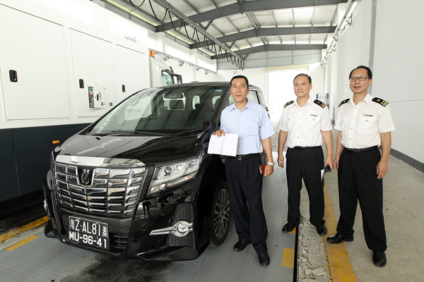 首辆通过珠澳陆路口岸小客车检查结果参考互认的澳门车辆