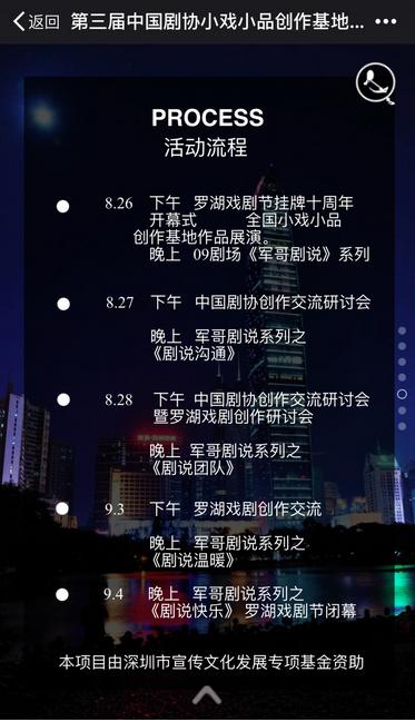 據悉,9月3日在羅湖文化館將繼續進行羅湖戲劇創作交流活動,以及軍哥劇說系列之《劇說溫暖》,9月4日軍哥劇說系列之《劇說快樂》將為首屆羅湖戲劇節劃上圓滿的句號。