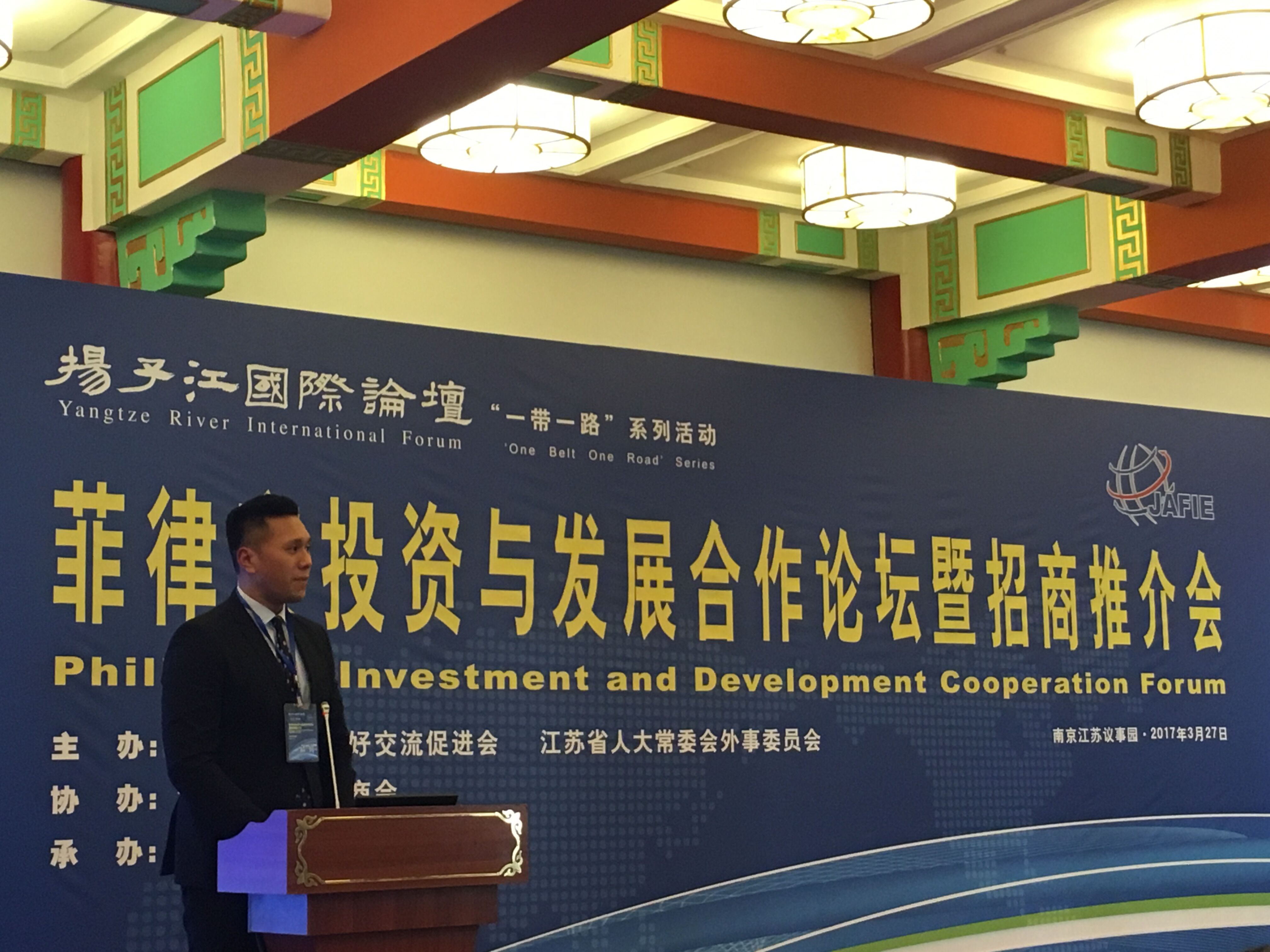 菲律賓駐滬總領事館領事安宜絡代表菲律賓駐滬總領事庫玉甘致辭表示,中菲兩國的友好關系有利於兩國的和平、繁榮與穩定,中菲兩國將在文化、教育、科學、旅遊業、經濟交流、民間交流等方面加強合作,相信本次論壇的舉辦將讓江蘇企業家更加了解菲律賓當地情況與投資機會,歡迎中國朋友訪問菲律賓,希望江蘇企業與菲律賓各地區合作成功。