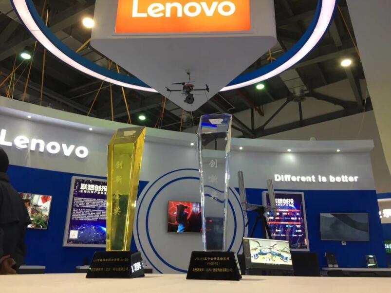 在展會現場的聯想主形象區,記者看到這裡展示了聯想模組化資料中心、工業維保服務、智慧醫療、AR地理信息系統應用,VR+Sport、全球首創空中AR/VR全景直播等場景應用,均是聯想在高性能計算、智慧互聯、智慧設備終端領域的卓越成績。榮獲本次大會創新獎的全球首創“VR360空中全景直播系統”,將基於5G移動互聯網、AR/VR影像融合、智慧無人機、超短微波等前瞻技術,利用微波即時傳輸技術將智慧無人機從空中捕獲的360度全景高清影像傳回地面進行二次資料處理,再結合5G 互聯網的快速和不受地域限制的特點,讓全球用戶體驗到前所未有的現場沉浸感,共用世界VR產業盛況。據聯想新視界高級技術顧問龔禹介紹,未來聯想新視界的主要市場方向將聚焦在全球城市景觀、大型賽事和活動、大型演唱會、智慧城市建模、公安安保現場指揮等大型VR直播。