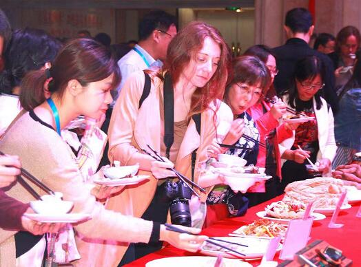 此次品鑒會,梅州市旅游局專門組織了全市8個縣(市、區)最具代表性的上百種地方特色客家美食參與展覽,并邀請現場嘉賓親自品鑒。