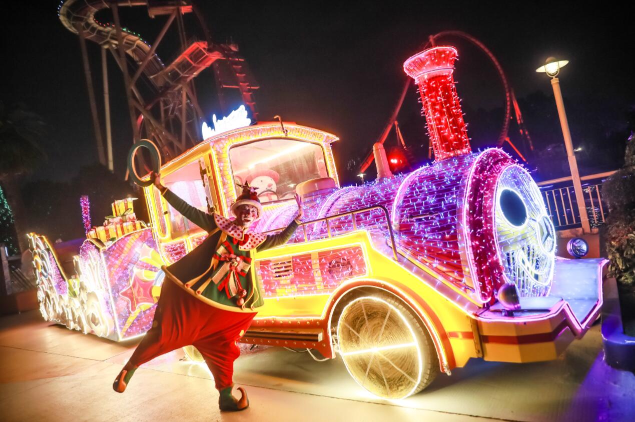 今年长隆欢乐世界打造“金”夜有爱欢乐圣诞节,由12月14日至2019年1月1日共19天,开启圣诞夜场(营业时间为15:00-21:00),“金”彩雪花大派对“金纷盛宴”每晚压轴上演,加上遍布全园的梦幻彩灯以及会说话能互动的趣味灯饰、圣诞雪花大巡游、圣诞美食商品集市等,一站满足大小游客吃喝玩乐、辞旧迎新的“金”色愿景。