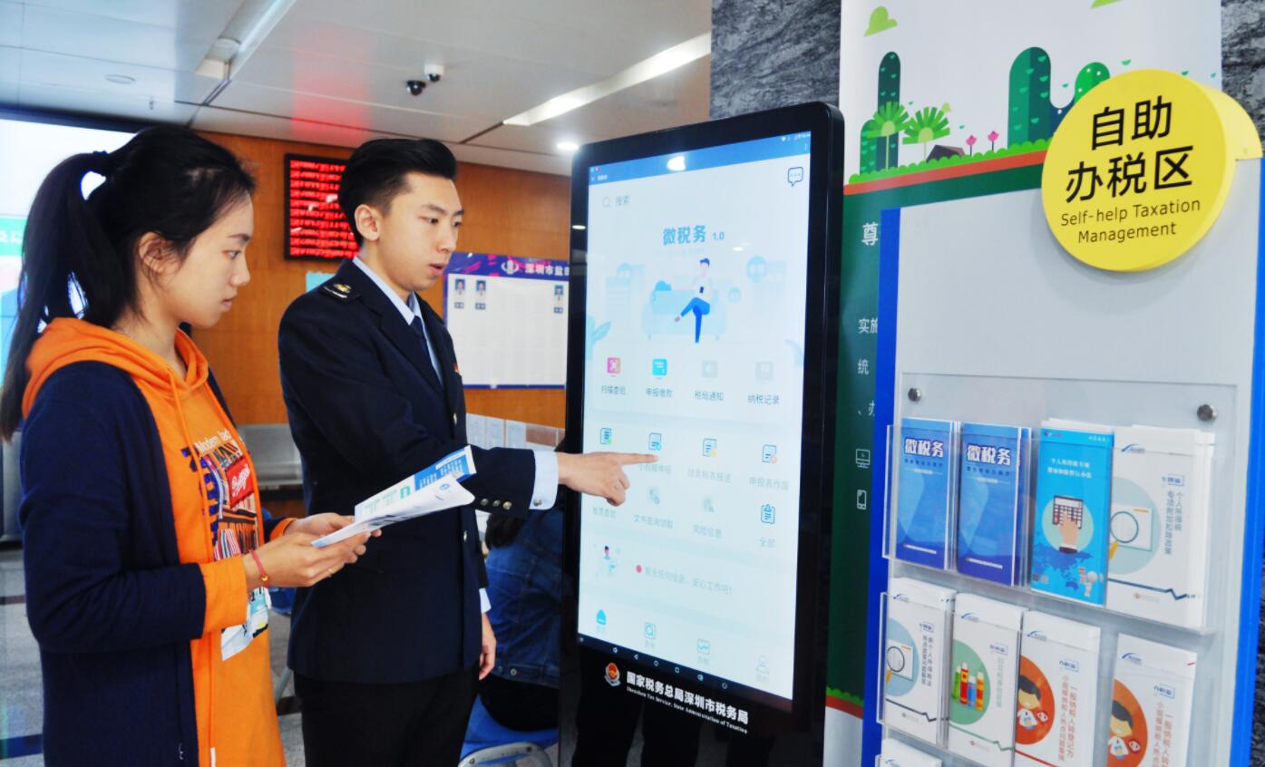 深圳市盐田区税务局办税大厅,导税人员会引导纳税人使用“微税务”。办税员李女士原是一家小餐厅的业主,餐厅早已停业却一直未办理注销,如今办理注销需要从2013年申报到当前属期。补申报增值税、企业所得税、附加费等需要填写的表格多、耗时长,还要反复在系统录入保存。大厅的导税人员手把手教她如何下载并登录“微税务”使用手机移动办税,使用批量零申报功能可以一键完成。李女士表示,“微税务”的批量零申报太方便了,还可以随时随地办税,坐地铁、喝咖啡的时候都可以拿出手机办税真的太方便了,申报期有提醒,未来就可以避免逾期申报了。
