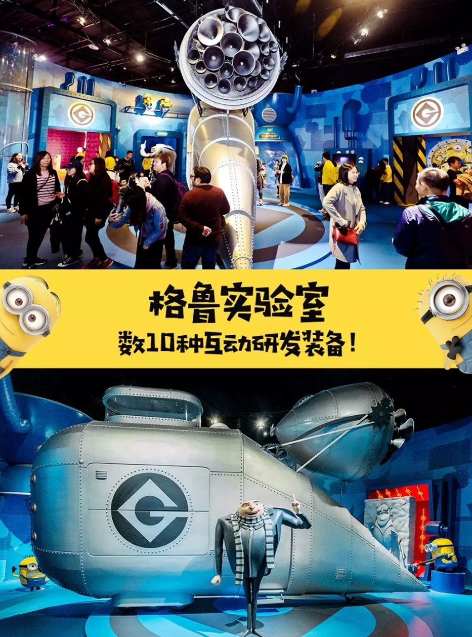 《神偷奶爸》系列動畫的經典片段與回憶,全都在深圳落地還原了。展覽總計占地4,000平,利用3個樓層打造出7大互動體驗展區,包含環壯劇院(Theater)、實驗室通道(Hallway)、格魯實驗室(Gru's Lab)、壞蛋區(Villains)、女孩們的房間(Girls' Room)、小黃人特區(Minios Zone)與商售區(Retail)。透過經典珍貴手稿圖素、格魯實驗室、還有史嘉雷殺很大(Scarlet Overkill)、維克特柏金斯(Vector Perkins)、人稱猛老大的愛德華多(Eduardo Perez A.k.a EL Macho)、巴薩澤布拉特(Balthazar Brett)等4位歷任反派,讓人除了可以藉由展覽進入電影經典場景與角色重逢外,還可以貼身了解小黃人的演化史。