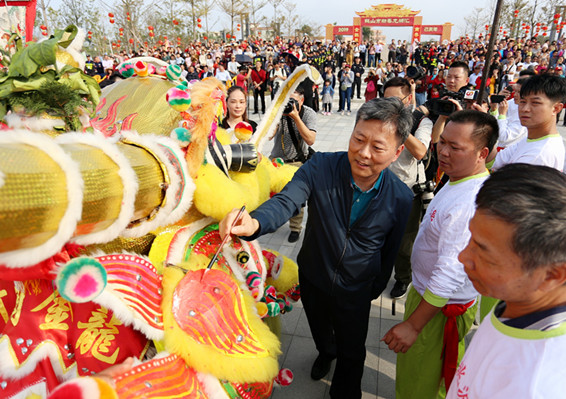 鹤山市委书记林贤进(中,挥笔点睛者) 杨继明 摄