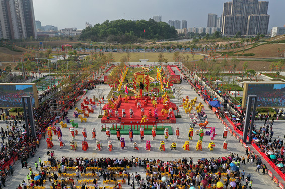 【香港商報網訊】记者 盛芳龄 通讯员 张曼君 周正仁 报道:大年初一,位于广东省江门五邑侨乡的鹤山市2019年新春龙狮汇在该市新建成的文化中心精彩上演,百头醒狮齐舞贺新春,百米金龙巡游庆丰年。万多名市民群众到现场观看这一具有南国文化特色的新春龙狮汇。