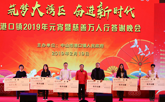 【香港商报網讯】记者 焦家志 报道: 2月19日,中山市港口镇2019年慈善万人行答谢晚会于元宵节当晚在镇文化中心广场隆重举行。据悉,今年的慈善万人行活动得到众多慈善人士的支持,港口镇共筹得善款善物1255.02万元(其中物资捐赠900万元),再创历史新高。