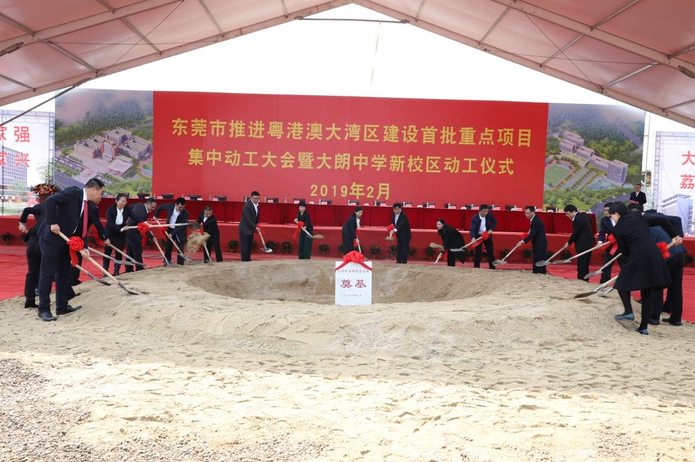 東莞市大朗鎮委書記謝錦波表示,大朗一直以來都很重視教育發展,大朗中學薪火相傳,近年來中高考捷報頻傳,成績位居全市前列。作為2019年全市首批重點項目之一,投資超5億元的大朗中學新校區動工建設,力爭建設成為特色鮮明、實力雄厚、成績顯著的東莞一流學府,為粵港澳大灣區的建設輸送更多的優秀人才。