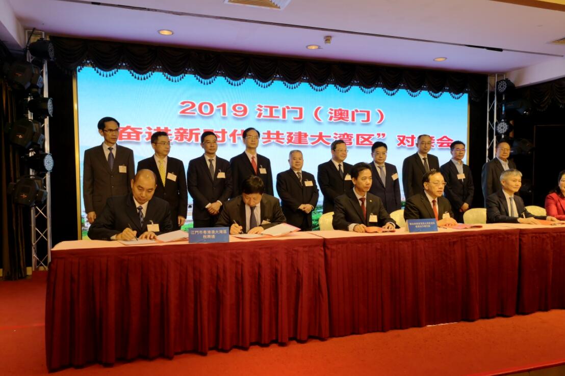 江門市稅務局局長陳雁城與澳門江門同鄉會會長甄瑞權簽署《江門市粵港澳大灣區稅務通合作協議》