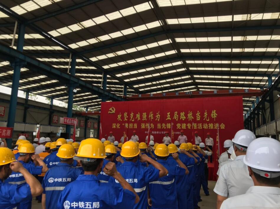 【香港商報網訊】為全面貫徹落實黨的十九大和十九屆二中、三中全會精神,深入學習貫徹習近平總書記廣東調研重要講話指示精神,助推粵港澳大灣區重點工程建設,5月28日,中鐵五局路橋公司黨委在廣州鐵路外繞線項目工地召開了以「攻堅克難強作為 五局路橋爭先鋒」為主題的深化「勇擔當、強作為、當先鋒」黨建專題活動推進會。