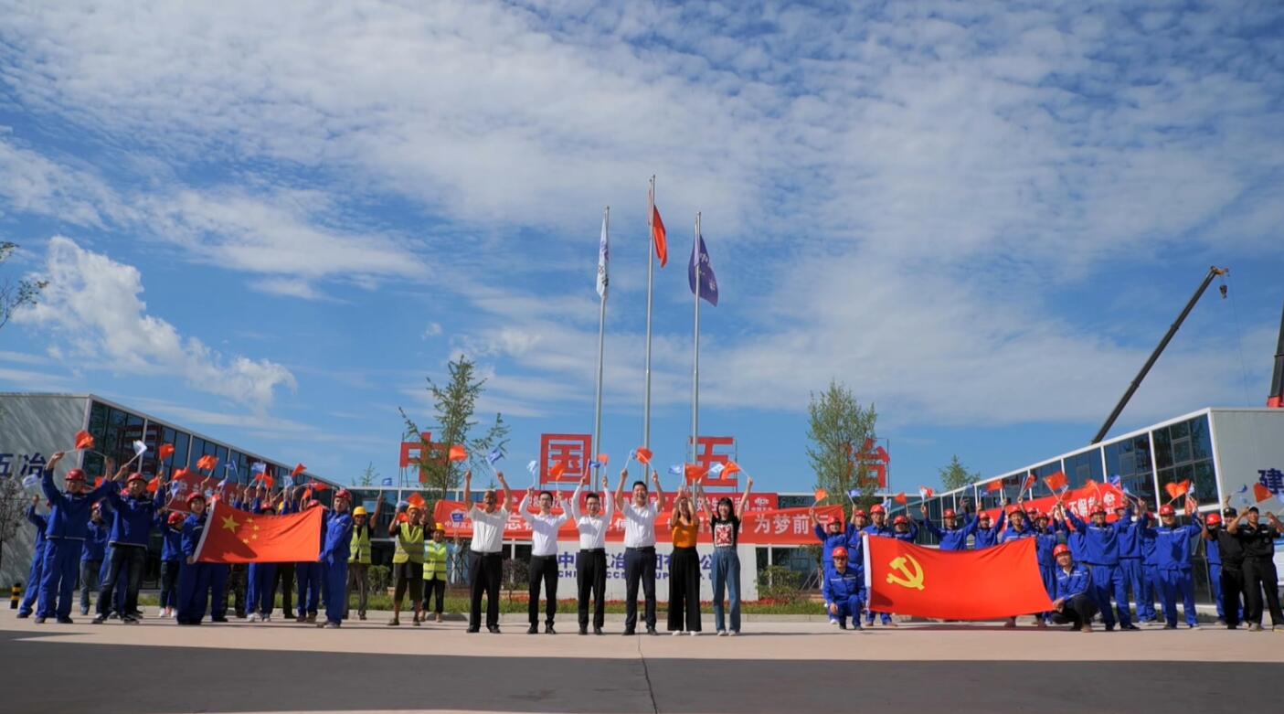 由項目承建方中國五冶集團組織策劃的一場「七一」快閃主題黨課活動現場
