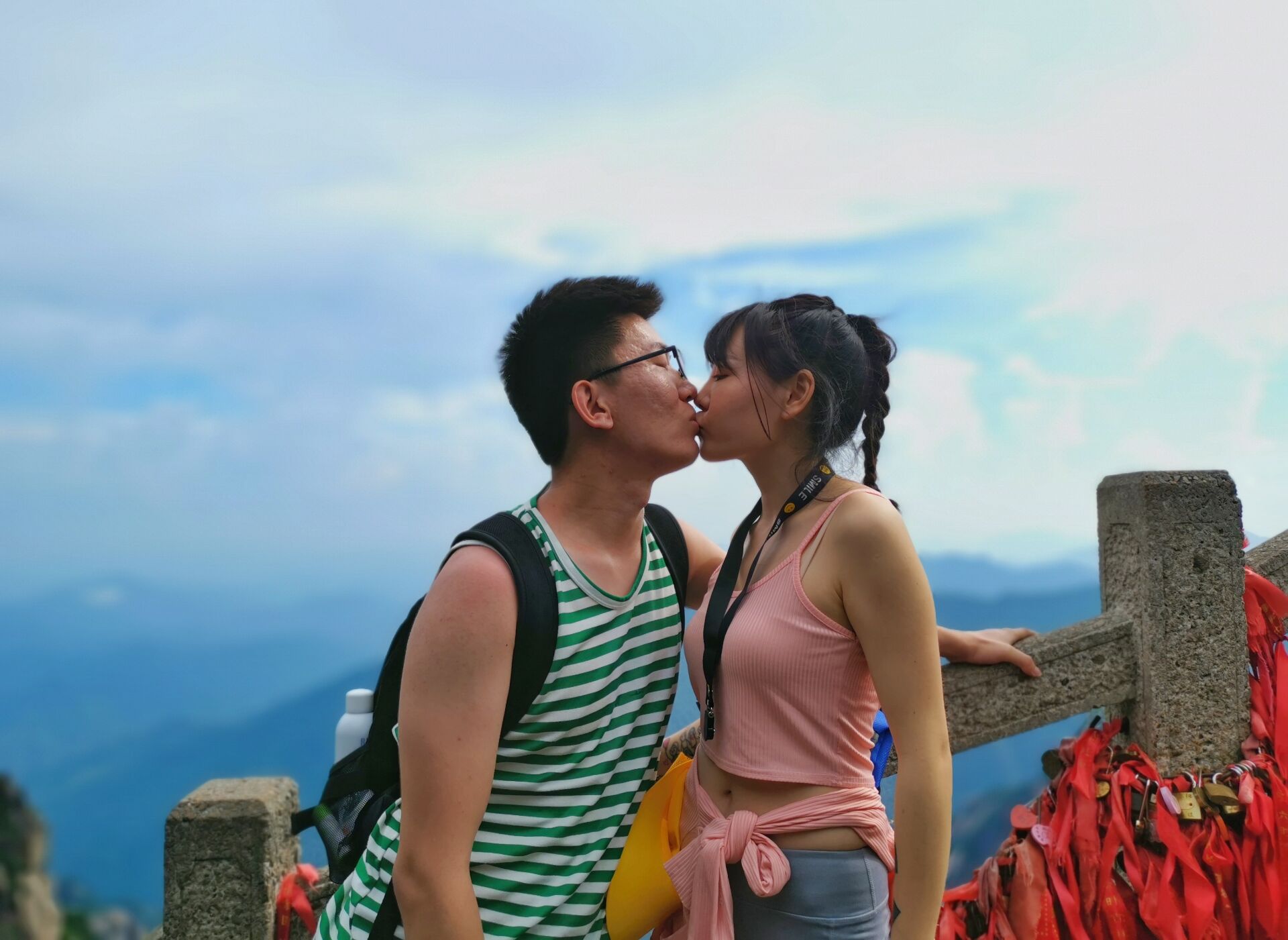 遊客在黃山之巔許下愛的諾言 吳誠攝