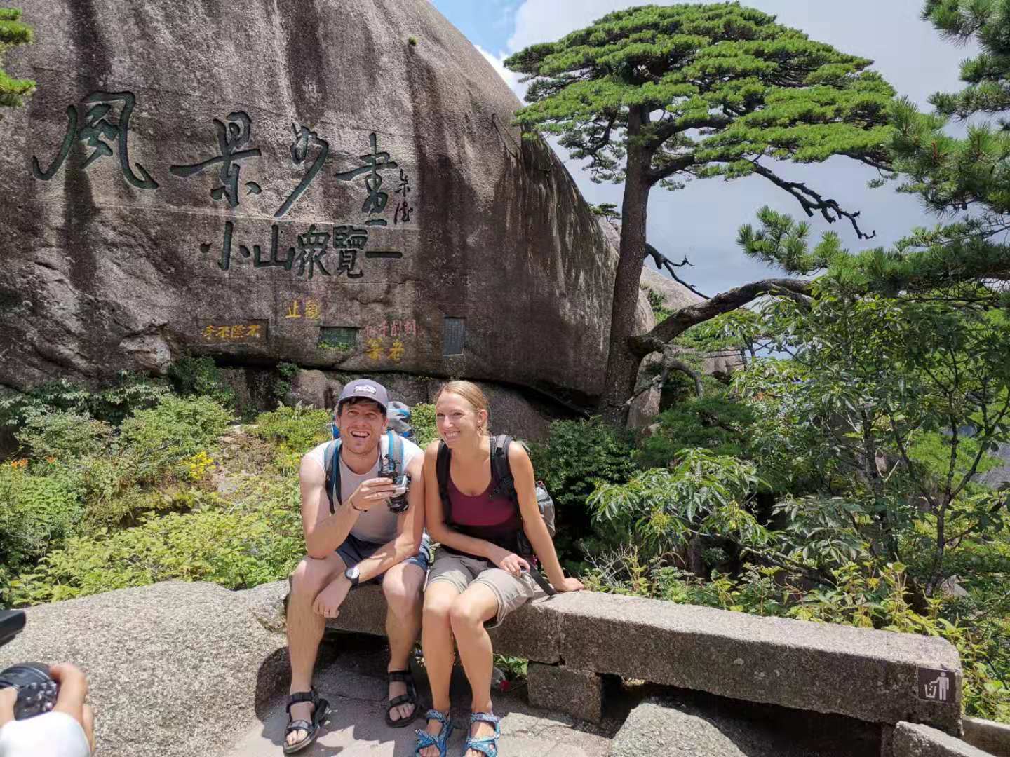 情侶遊客在迎客松前合影留念 洪江宇攝