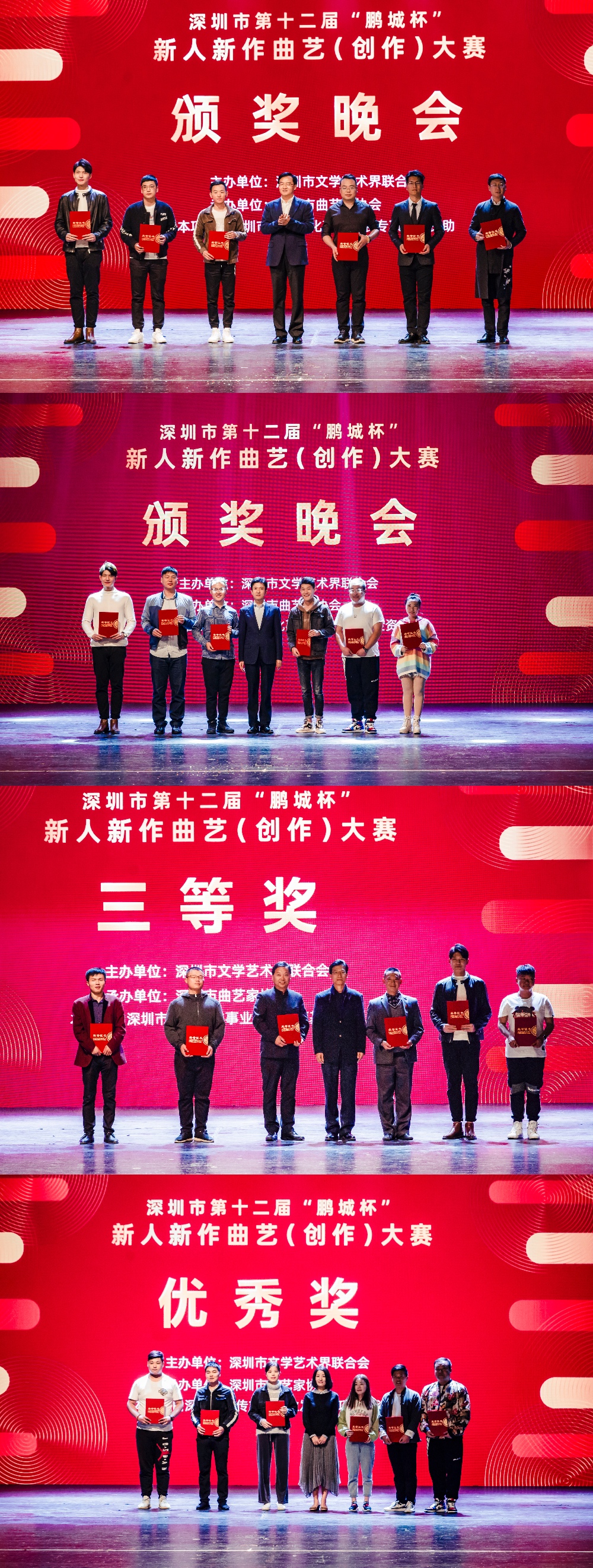 【香港商報網訊】記者 黃鳳鳴 報導:2019年12月3日晚八點,由深圳市文學藝術界聯合會主辦,深圳市曲藝家協會承辦的深圳市第十二屆「鵬城杯」新人新作曲藝(創作)大賽頒獎晚會在華夏藝術中心舉行。廣東省文聯副主席、深圳市文聯黨組書記、主席李瑞琦,深圳市文聯黨組成員、副主席張忠亮,廣東省文聯副秘書長梁少峰,廣東省曲藝家協會專職副主席宋梟楠等領導和部分著名曲藝家、獲獎代表,以及數百名深圳市民共同出席了頒獎晚會。