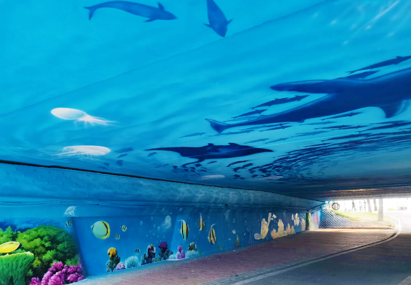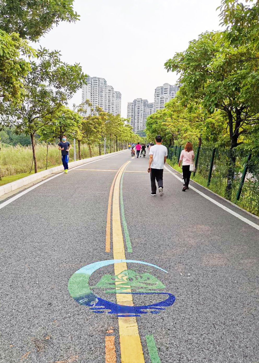 該碧道工程擁有獨特的專屬logo,總長約17.8公里,圖案總面積約500平方米;通過對花都湖水文化融入,形成水文化與城市景觀聯動的宣傳長廊,面積約300平方米;採用3大主題,包括:海洋主題,桃花水母,花海主題,以此改造碧道沿線橋下空間,面積約3900平方米,構造成特色旅遊打卡點;此外,為完善碧道標識系統,沿途還增設約12個碧道標識牌。