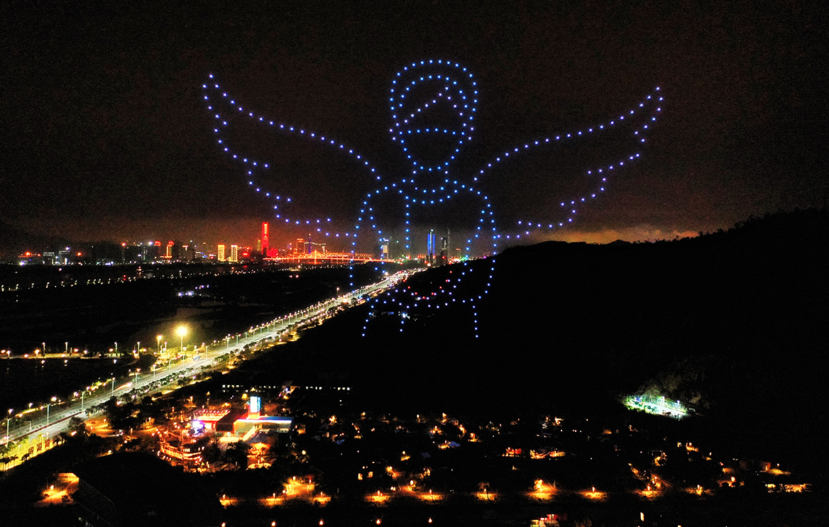 18日晚8點,300駕無人機編隊在珠海橫琴星樂度·露營小鎮上空進行了為時約10分鐘的飛行表演。炫酷的聲光,暖心的情節,組成了一幅幅生動的畫面——白衣天使逆行出征、抗擊疫情,圓滿完成任務歸來……最後,無人機組成了流光溢彩「愛在星樂度」字樣,讓表演精彩紛呈,也代表着以橫琴星樂度·露營小鎮的橫琴文旅產業也因此得以重新綻放。