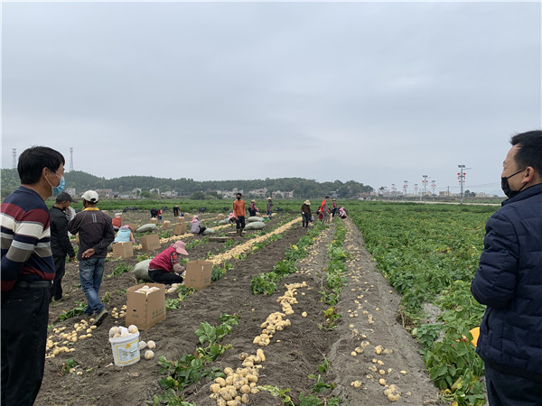 受新冠肺炎疫情影響,該縣鐵涌鎮石橋村村民張佛珍種植的馬鈴薯田收成推遲了一些,但產量和收購價格並沒有讓他失望。