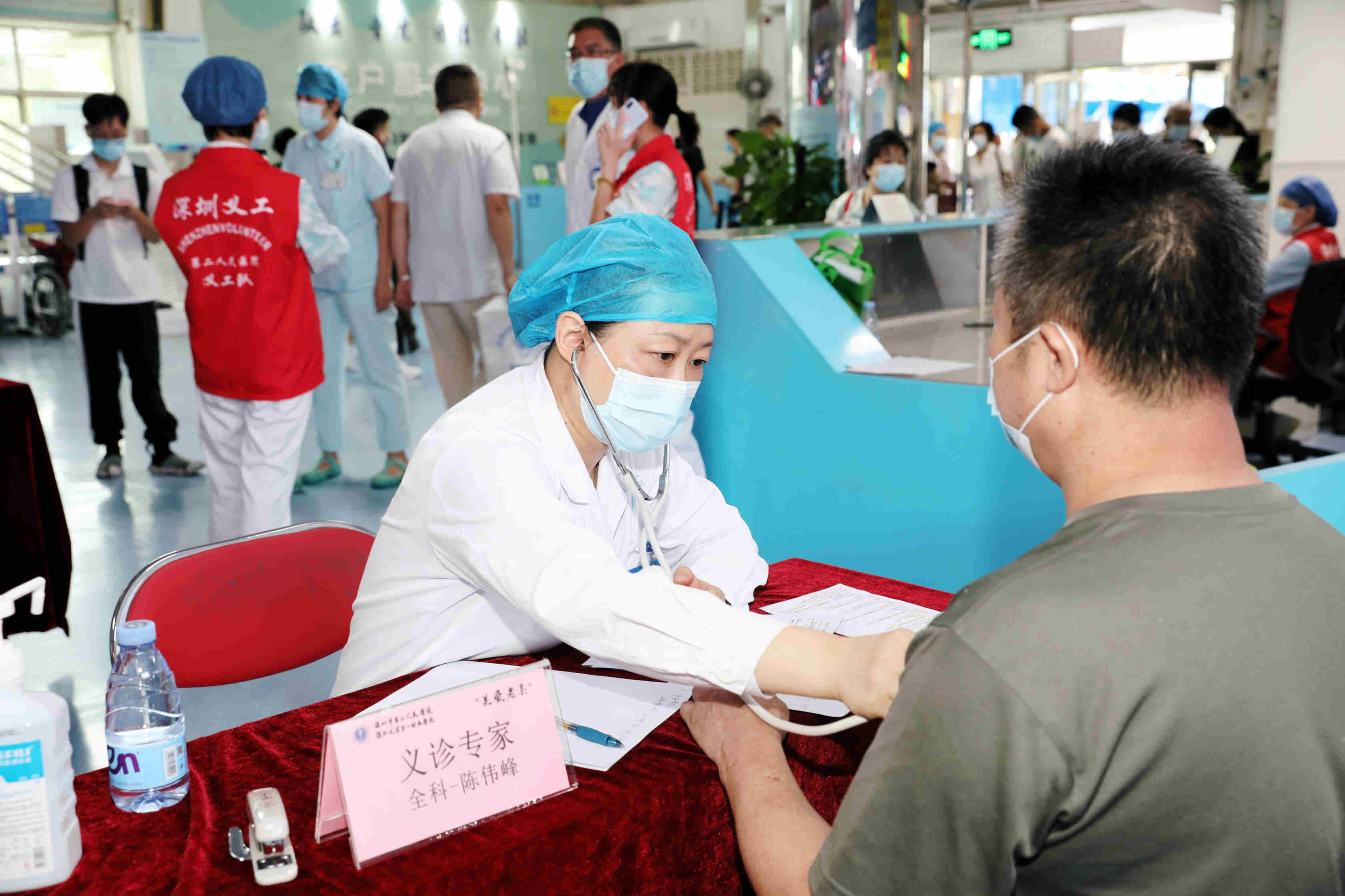 上午九點活動正式開始,聞訊趕來的社會各界退役軍人、優撫對象、市民朋友來到深圳市第二人民醫院門診一樓,來自心內科、呼吸內科、神經內科、內分泌科、神經外科、創傷骨科、脊柱外科以及全科的專家團隊在現場為大家進行義診諮詢服務。
