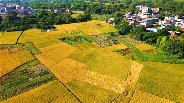 據介紹,在金黃的稻田邊到處是忙碌的農戶,村民鍾叔站在田邊看着眼前黃澄澄的稻海,「再過兩天吧,就收割了,今年稻穀增產了。」鍾叔表示,自己種植了1畝的水稻,預計產量達800斤,除了天氣因素,種子品質提高,加上農技員的協助,今年水稻長勢好,收成好。(記者 賴小青 李芳 通訊員 黃穎瑤 圖 鄺健華)