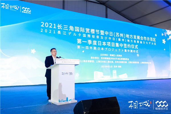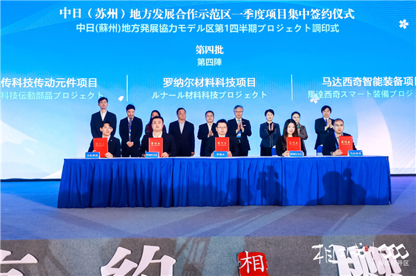 4月1日,蘇州相城舉行長三角國際賞櫻節暨中日(蘇州)地方發展合作示範區第一季度日本項目集中簽約儀式。此次簽約的11個項目包括中日醫療機械人項目、日本跨境商品平台項目、日本光伏儲能電池系統研發中心項目等,涉及先進材料、智能製造、醫療健康等新興產業.