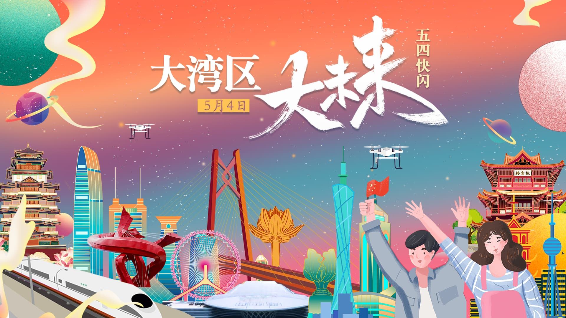 據央視報道:不同的地點同樣的情懷,在「五四」青年節來臨之際,一場場以「大灣區·大未來」為主題青年「快閃」活動,在香港、澳門特別行政區和珠三角共11座城市聯動起來。