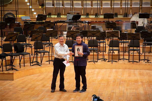 上海音樂學院作曲系教授、博士生導師徐孟東為一等獎獲得者文子洋《望川Ⅵ.姑蘇》頒獎