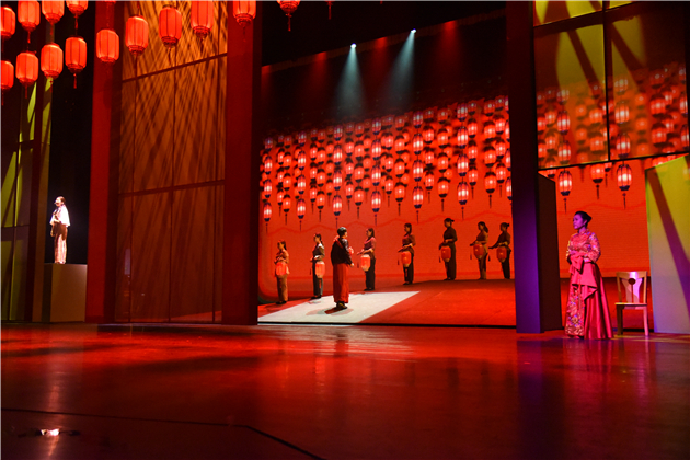 在舞台效果呈現方面,該劇結合了本地非遺文化跳花棚等創作出獨特的舞蹈動作,體現茂名地方特色。此外,還運用了全息投影技術和演員表演緊密結合的方式,利用聲光電等現代舞台技術,讓劇情更有張力,帶給觀眾視聽震撼和身臨其境的代入感。