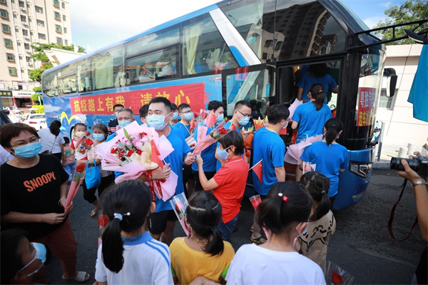 活動現場有寶安區福永人民醫院福圍專班醫療組、核酸採樣青年突擊隊、福圍社康中心等近160名醫護人員及該院領導班子成員。聽聞醫護人員要撤離福圍,福圍社區居民紛紛自發到現場為醫護人員送行,群眾拿着鮮花送給撤離的醫護人員,一邊說着感謝的話語。