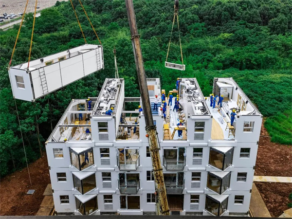 記者在遠大科技集團園區的「活樓」和生產車間進行了現場觀摩,該「活樓」真正實現0混凝土,0腳手架,0模板,0建築垃圾,其結構、牆窗、機電、智能控制、裝修全部在工廠安裝調試。遠大活樓採用的工廠化生產,比現場施工效率提升20倍以上,工人使用量下降70%以上,極大地減少了人工成本,提高資金周轉率。活樓不僅建造快、安全抗震、低碳環保,而且居住舒適度極高。整棟大樓嚴格按照20項舒適度標準建造,包括淨、靜、熱、風等方面均有細化量化指標。整樓還預裝了三級過濾的潔淨新風系統,室內空氣比室外潔淨100倍以上。